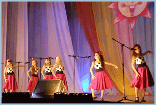Юные участники и руководитель коллектива - Марина Агаева очень постарались и подготовили, действительно, «солнечную» программу. В исполнении маленьких артистов прозвучали популярные детские песенки: «Барбарики», «Летка — енька», и др. А лучшими были костюмированные номера: «Маленький щенок», «Цыплята», «Танцы лягушат».